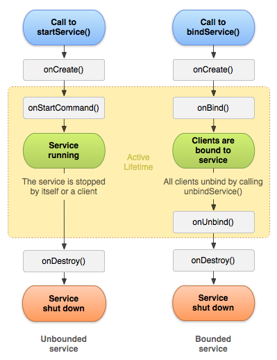 Activity 와 다른 프로세스에서 서비스가 실행되는 "원격 서비스"로 구분된다.