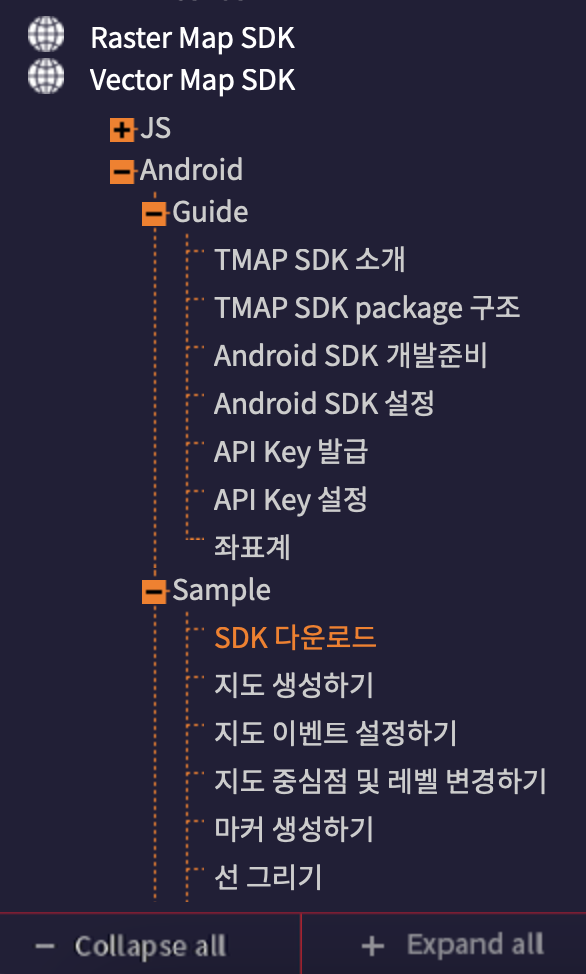 Raster Map SDK, Vector Map SDK 둘 중 하나 고르면 된다.