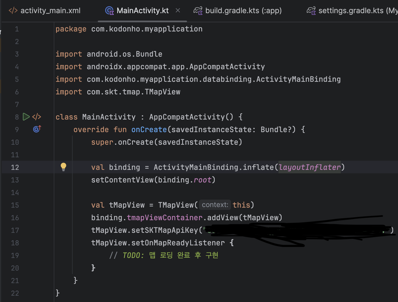 그리고 JAVA코드는 kotlin 문법으로 변경하고 코드 수정도 조금 더 해서 MainActivity.kt에 넣었다.