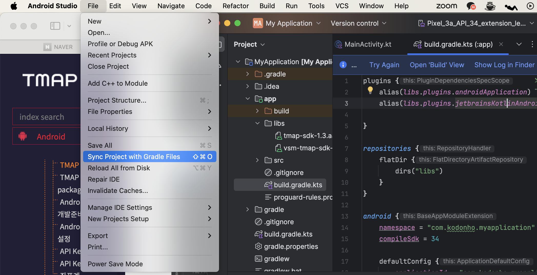그리고 File 설정에 있는 Sync Project with Gradle Files를 누른다