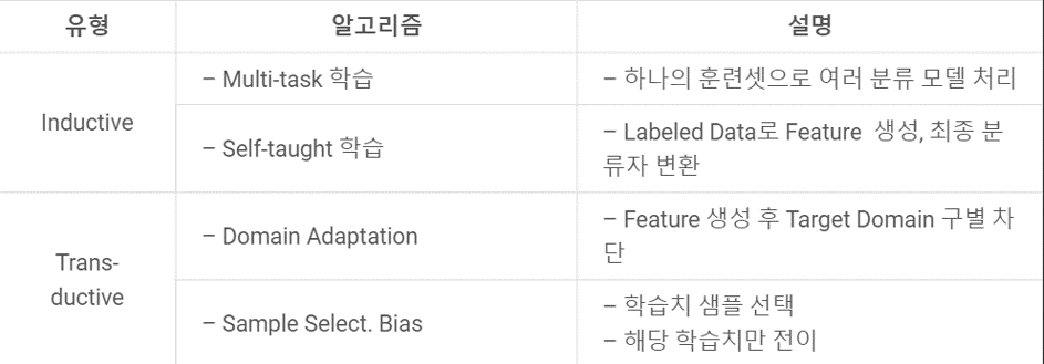 아래의 표에 자세히 설명되어 있지만, 귀납과 변형의 가장 큰 차이는 target domain에 label이 있는가 없는가의 차이이다. 귀납의 경우는 정답이 있기 때문에 그 정답에 대한 추론을 진행하지만, 변형 전이학습은 정답이 없어서, source의 label에만 국한되지 않고, target의 label을 도메인에 맞게 변형할 수 있다!