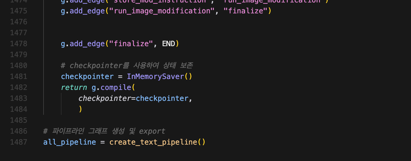 사용자가 입력을 마치고 다시 실행하면, checkpointer가 저장된 상태를 불러와서 중단된 시점 이후부터 파이프라인을 이어서 실행 (덕분에 처음부터 다시 돌릴 필요 없이, 멈췄던 부분부터 재개가 가능)