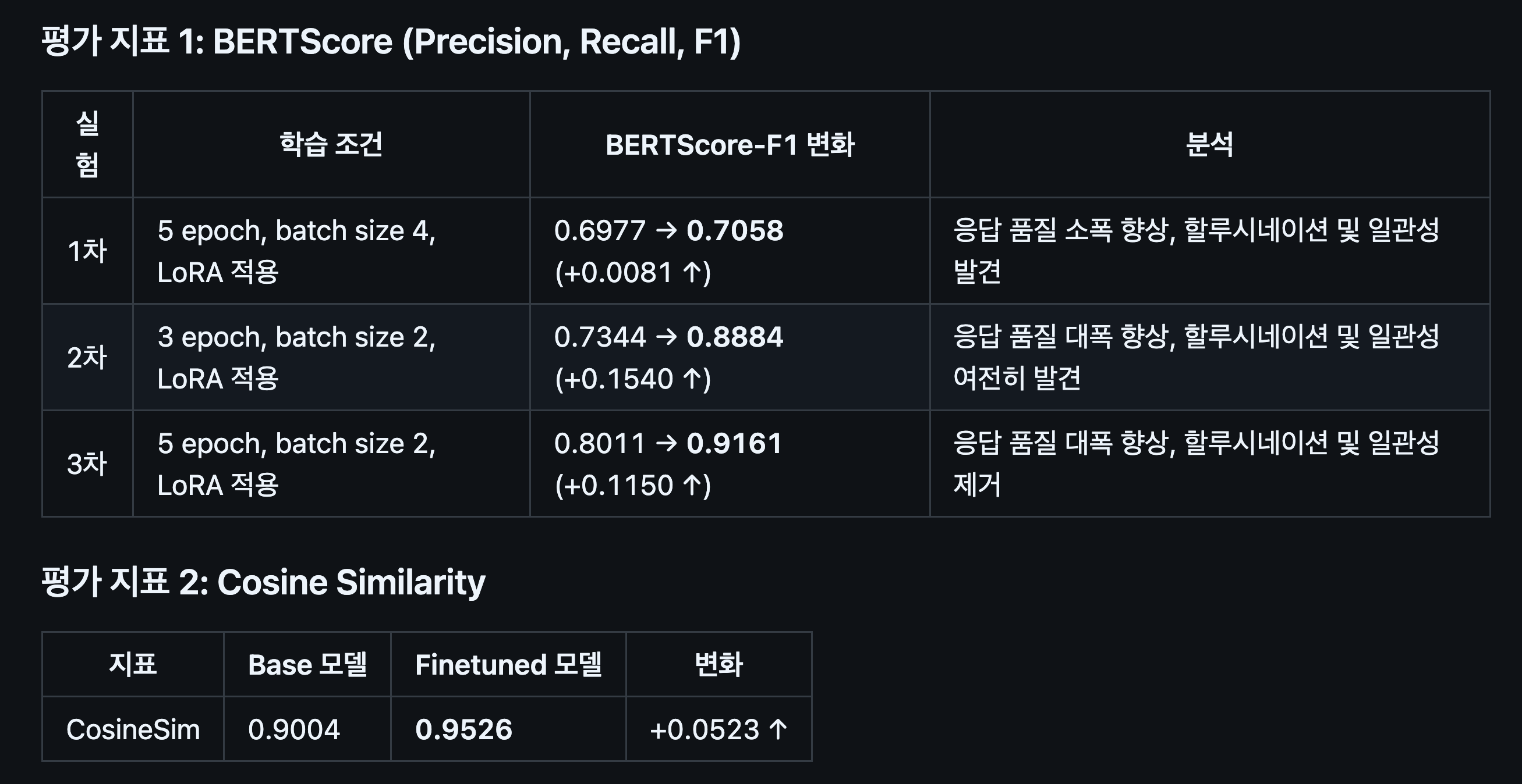 또한 모델이 낸 결과가 정말 유의미한지, 사람에게 어떤 가치를 주는지 판단하는 것은 결국 사람이 맡아야 하는 역할이었다. 정량적인 지표와 정성적인 사용자 평가를 함께 바라보며, 더 나은 개선 방향을 찾아내는 능력이 중요하다는 것을 이번 경험으로 확인할 수 있었다.