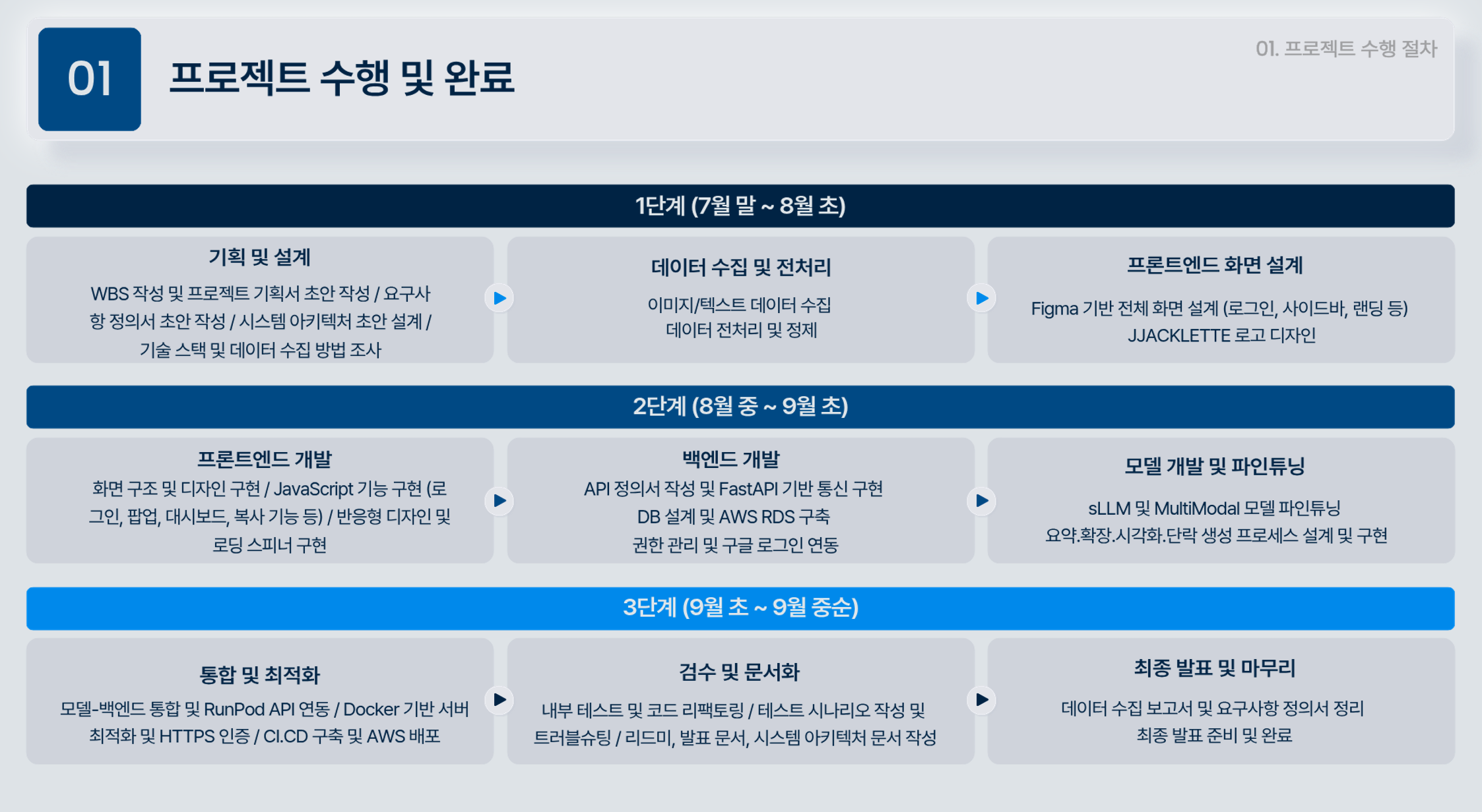 4. 모델 통합 및 배포: 파인튜닝된 모델들을 JJACKLETTE 플랫폼에 통합하고 배포하여 실제 서비스에 활용