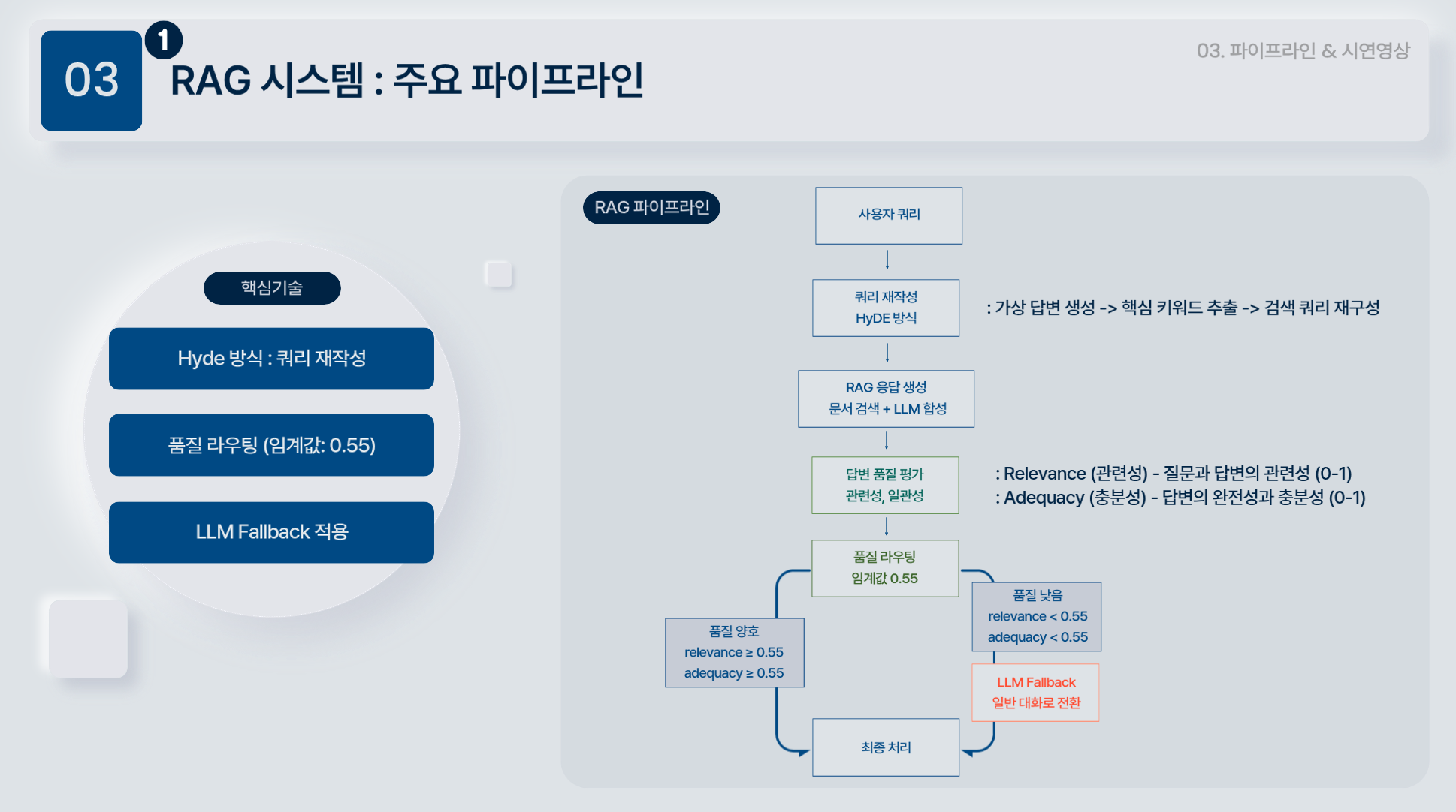 3. 모델 파이프라인 구축: 파인튜닝된 데이터 이외에 추가적으로 RAG 기반의 내부 문서 검색 혹은 모델 활용 경로 설정