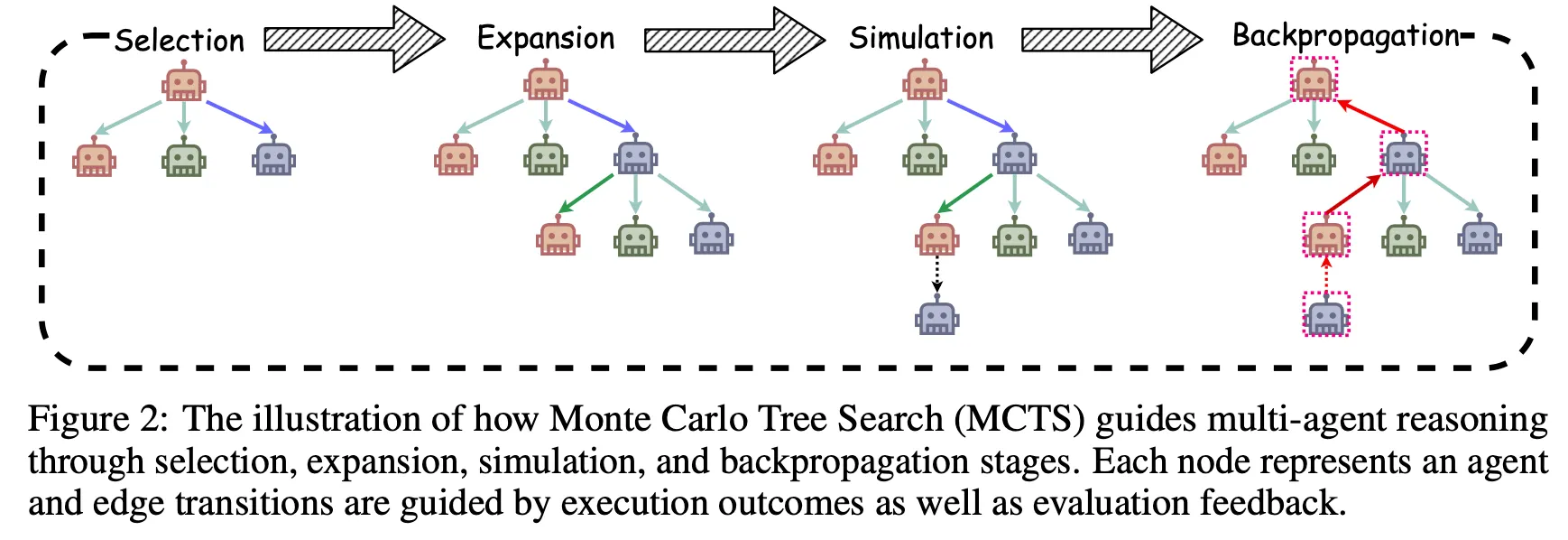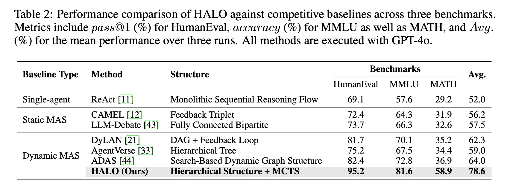 반면 HALO는 MCTS 기반 탐색(Monte Carlo Tree Search)을 통해 실시간 피드백에 따라 적절한 역할을 동적으로 생성하고, 실행 경로를 반복적으로 개선한다.
