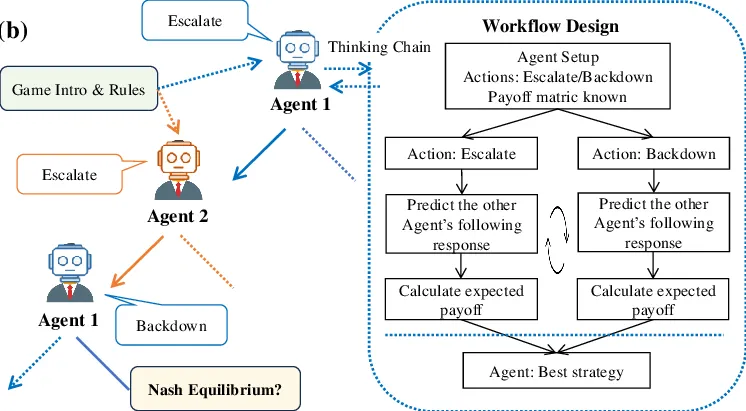 Game-theoretic Workflow : LLM에게 단순한 “무엇을 해라” 지시를 넘어서, “이런 사고 과정을 거쳐야 한다”라는 구조적 지침을 제공 (규칙 설명 → 전략 탐색 → 균형 분석 →….)