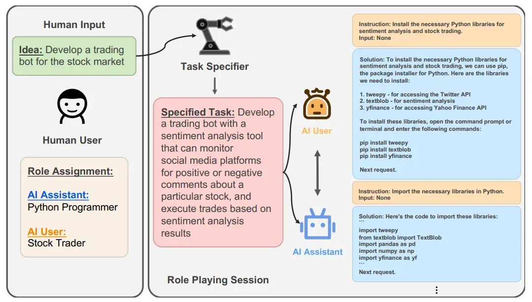 각 역할에 맞는 시스템 프롬프트를 할당 받으며 하위 과업 Tk에 의해서 행동을 제어한다. 즉, 역할 설계 에이전트는 (Tk,Q∗,F)을 입력받아 특화된 역할 프롬프트ρk(i)를 생성