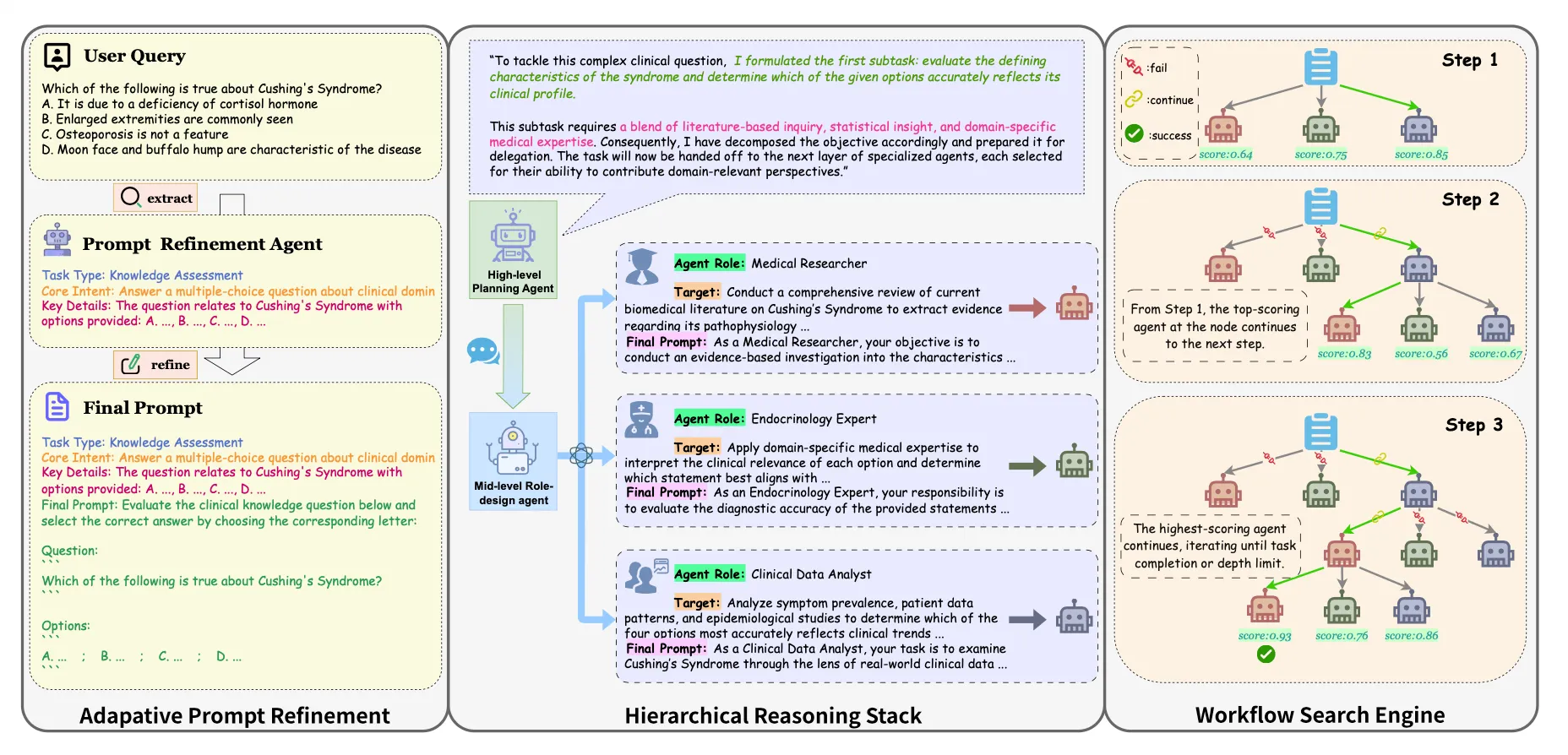 → different phase of prompt refinement (query parsing ~ final synthesis)