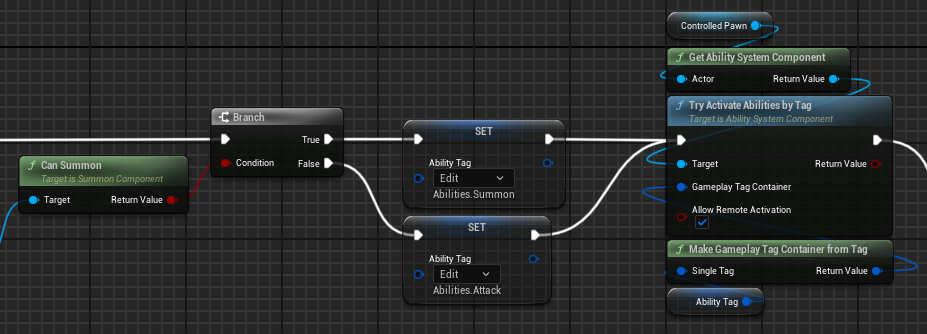 Shaman용 Attack Task의 구현부다. 나머지 부분은 범용 Attack Task와 일치한다. 단순하게 하수인 소환 가능한 상태인지 확인하고, 가능하면 Abilities.Summon을, 아니라면 Abilities.Attack을 발동한다.