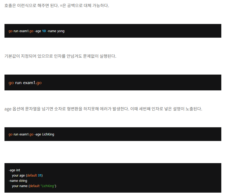 flag 패키지를 사용하면 인수의 기본값 설정, 데이터 타입 변환, 자동 도움말 메시지 생성 등을 쉽게 구현할 수 있다.