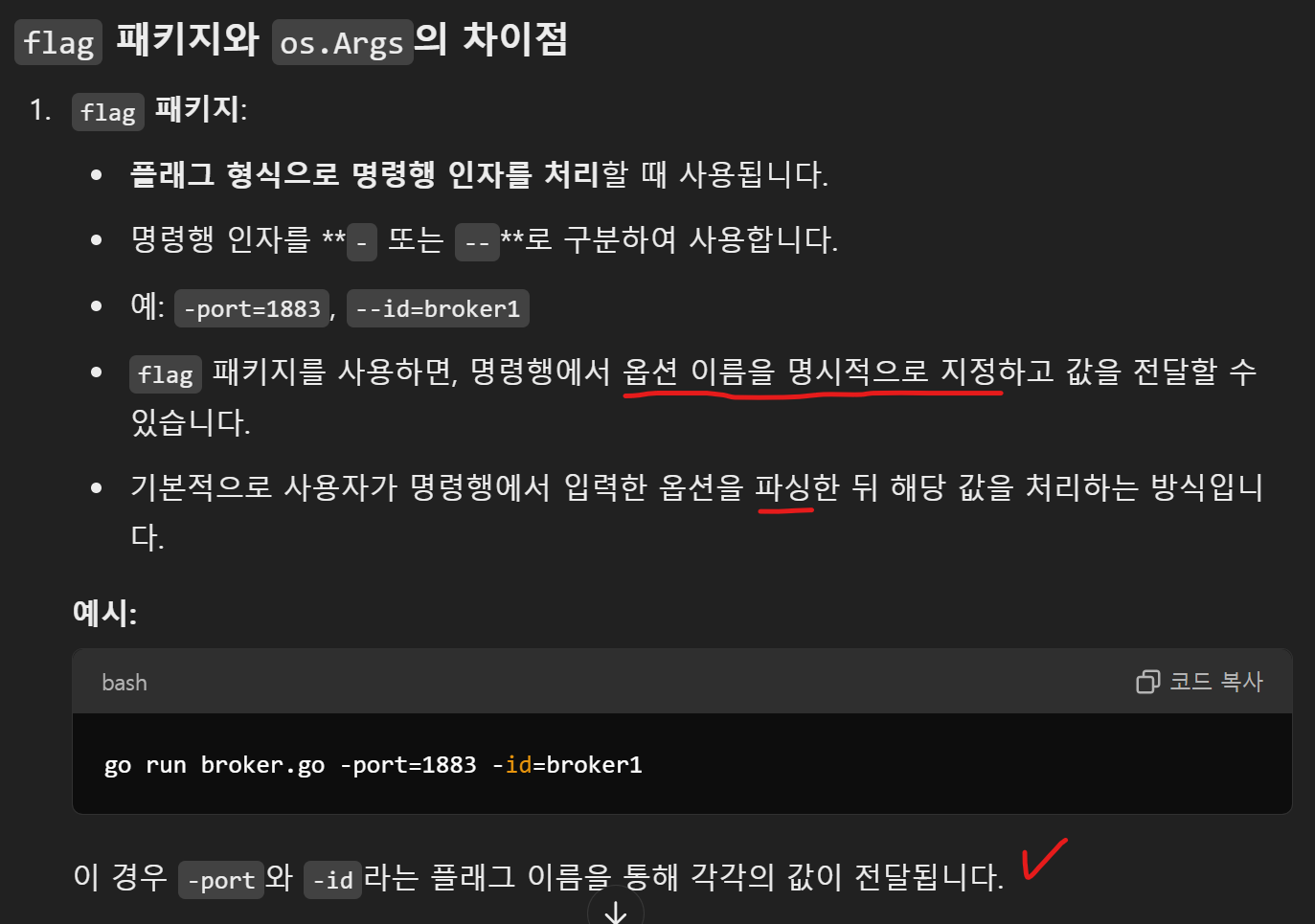 더 구조화된 접근이 필요할 경우flag패키지를 활용하여 다양한 옵션과 설정을 관리할 수 있다.