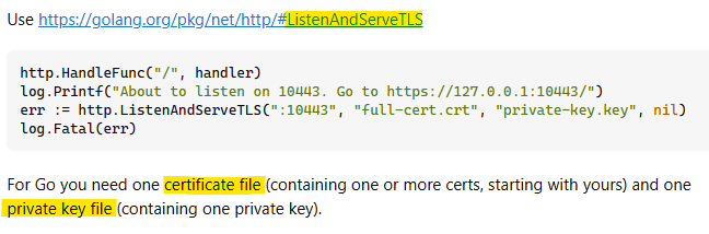 net/http 패키지의 http.ListenAndServeTLS 함수로 HTTPS 서버를 실행할 수 있다.