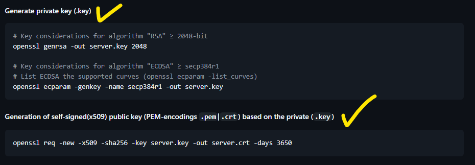 openssl req -x509 -newkey rsa:2048 -nodes -keyout key.pem -out cert.pem -days 365