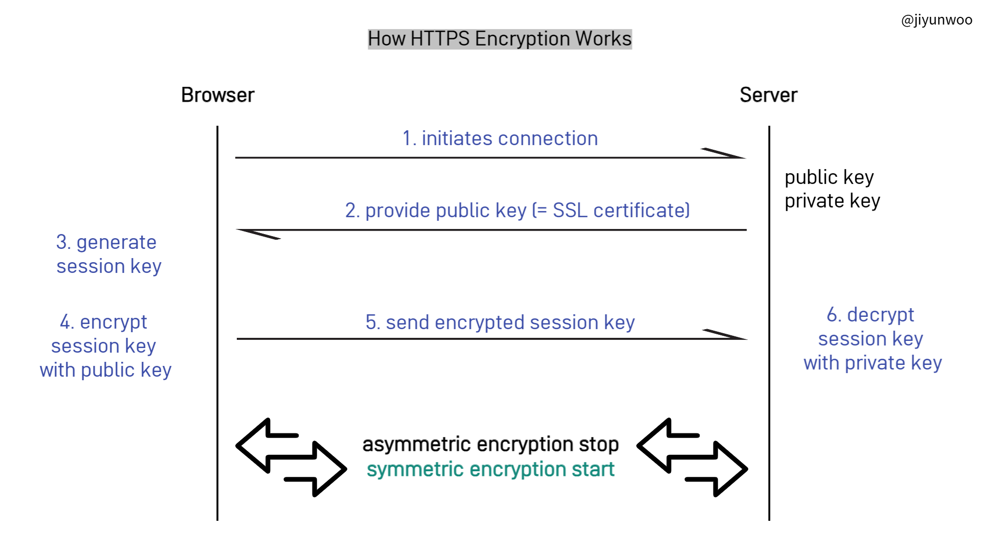 ✅ 6. 브라우저가 서버의 공개키를 사용해 세션키를 공유