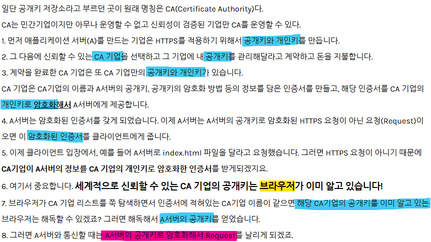 🔑 또한 브라우저에는 인증된 CA의 정보들이 사전에 등록되어 있어