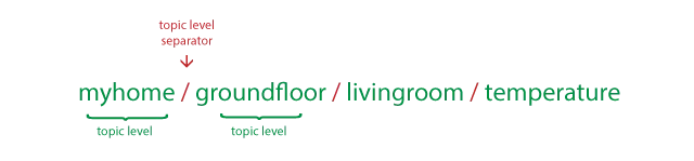 위 예시에서 슬래시 전후에 있는 office, firstFloorm SWoffice, temp는 모두 각각의 토픽 레벨 (Topic Level)이며, 해당 토픽은 Topic Level Seperator라고 불리는 슬래시로 구분된다.
