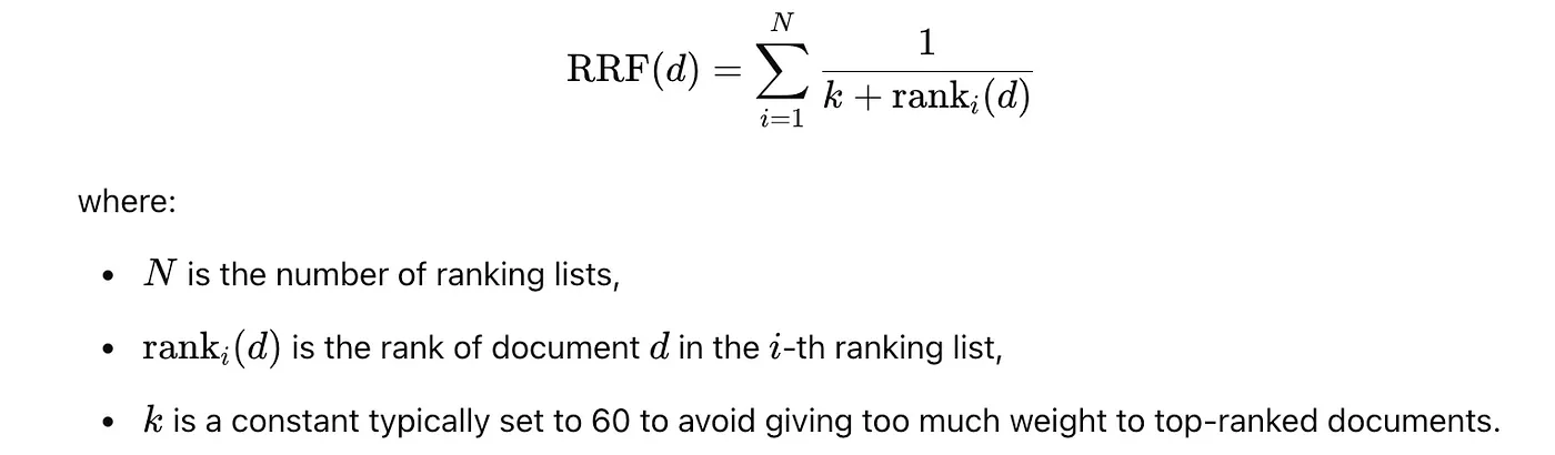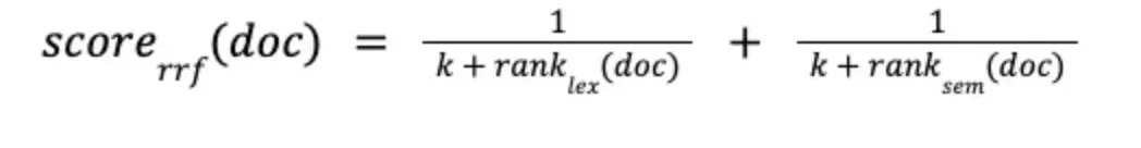 → Lexical search 결과와 Semantic search 결과 결합 위해 재순위화 알고리즘 사용