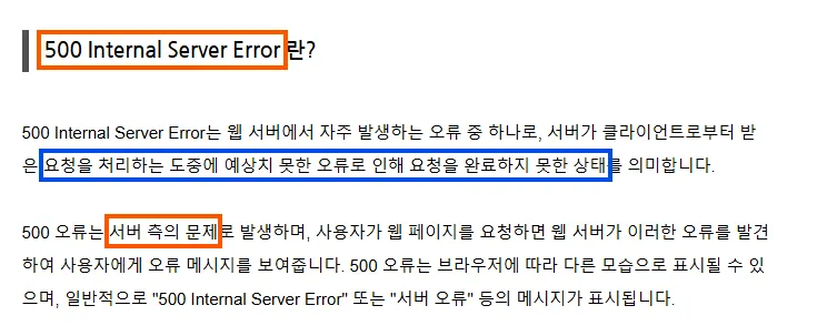 ✨ 500 에러는 웹 서버에서 에기치 않은 오류가 발생하여 요청을 처리할 수 없을 때 나타나는 일반적인 HTTP 오류이다.