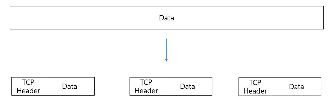 TCP프로토콜은 통신과정에서 데이터를 여러 블록으로 나누어 각 블록마다 TCP Header를 붙여 만든 세그먼트(Segment)단위의 데이터를 주고 받는다.