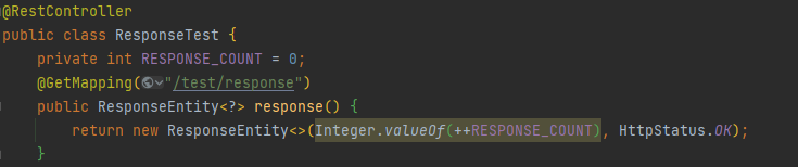 요청을 받으면 RESPONSE_COUNT의 값을 증감시켜 응답을 해주는 코드입니다.