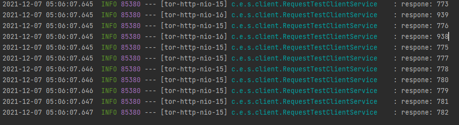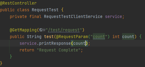 해당 경로로 파라미터값을 입력하여 요청하면 입력한 수만큼 스레드를 생성하여 응답서버로 병렬 요청을 통해 순차대로가 아닌 응답을 받은 순서대로 출력을 하는 코드입니다.