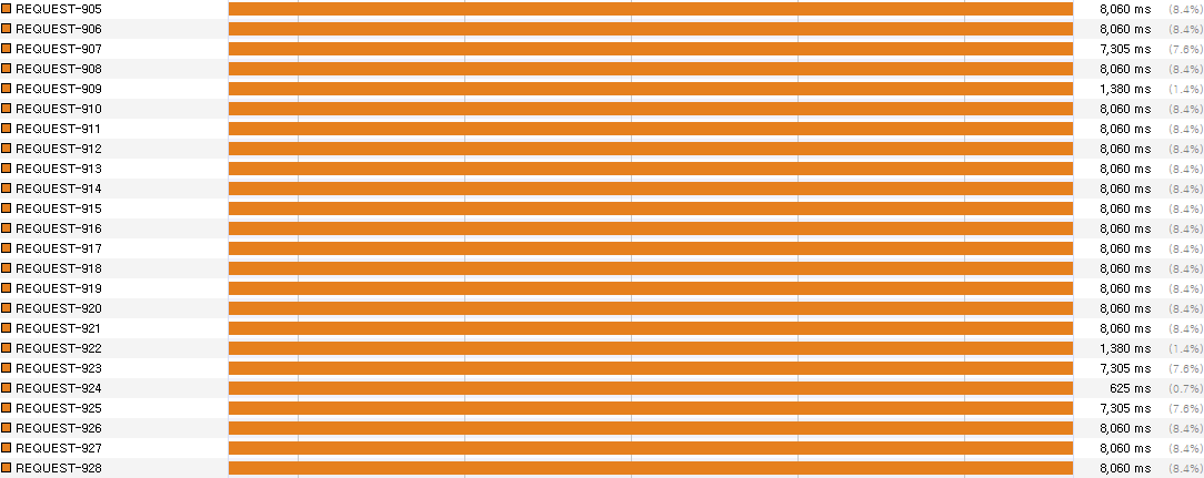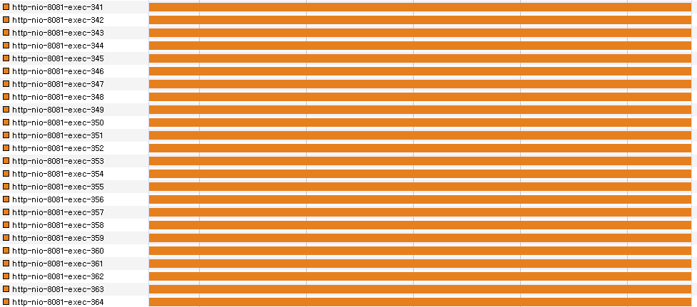 1000개의 요청을 보낸 후 요청서버의 스레드입니다. 사진에는 다 나오지는 않았지만 1000개의 스레드가 생성되었습니다.