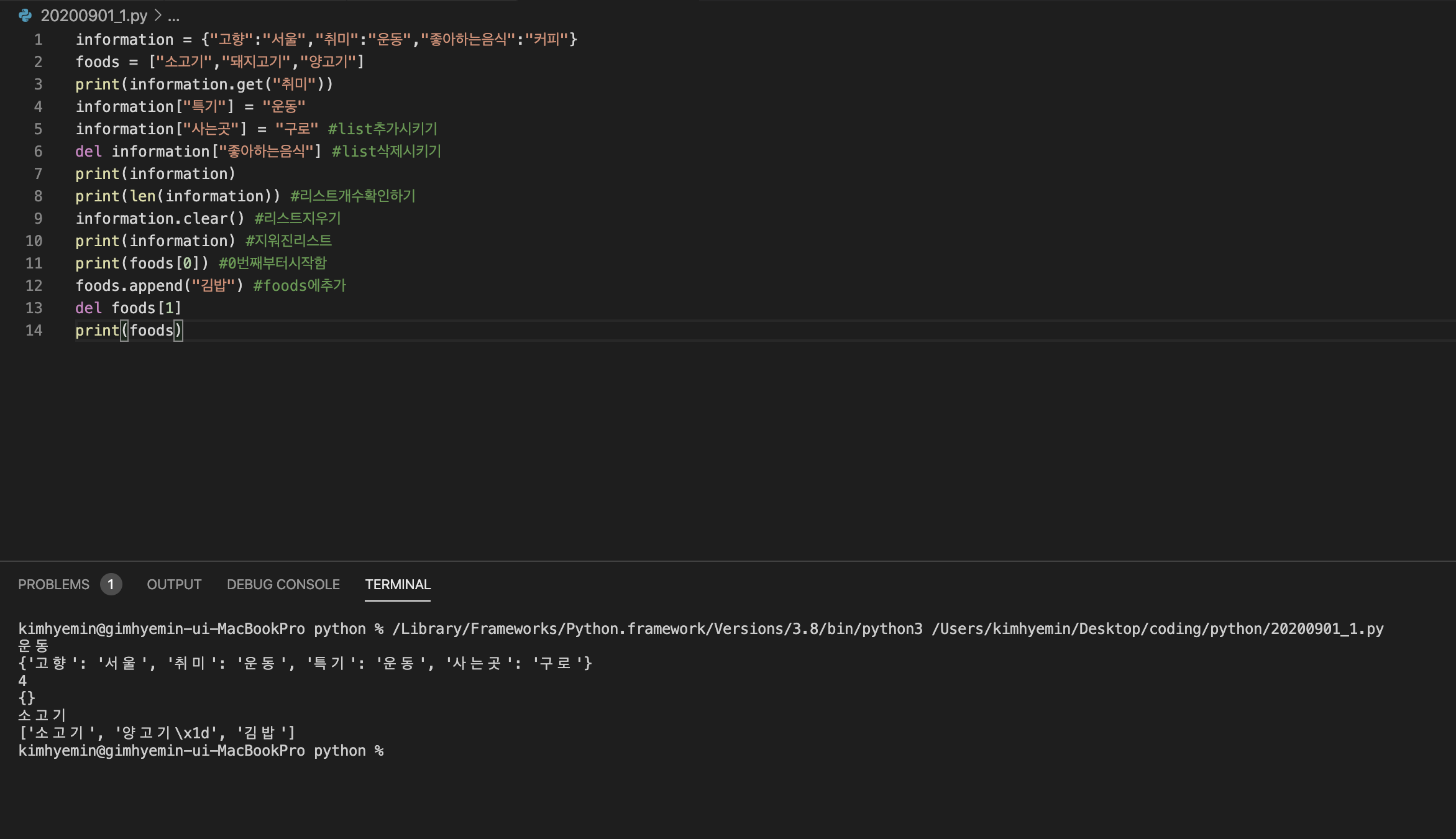 foods : dictionary 가 아니여서 그냥 추가가 아니구 .append() 를 해야 추가가 가능합니다