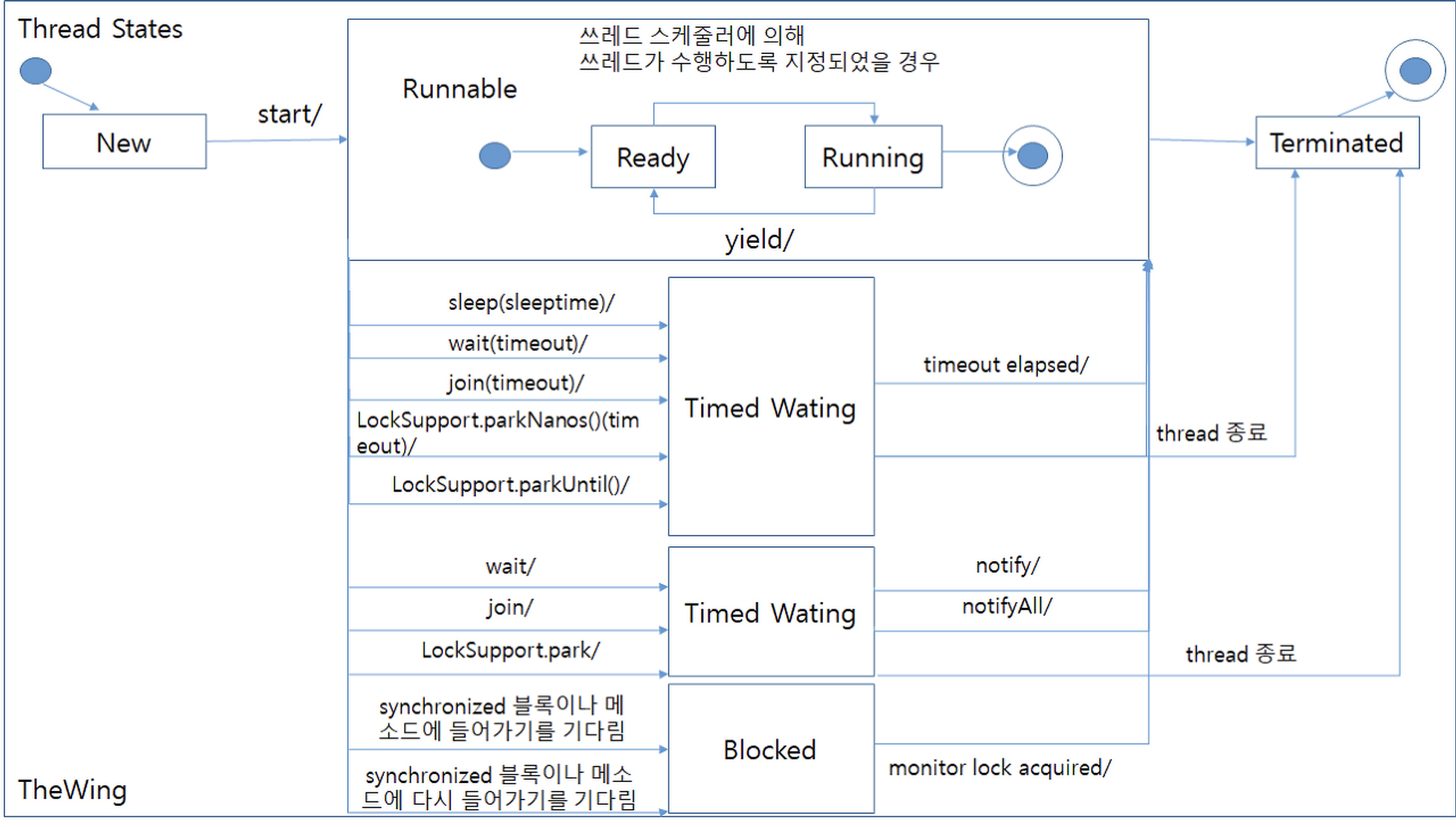 사용하려고 하는 리소스의 락이 해제되길 기다리는 상태쓰레드가
