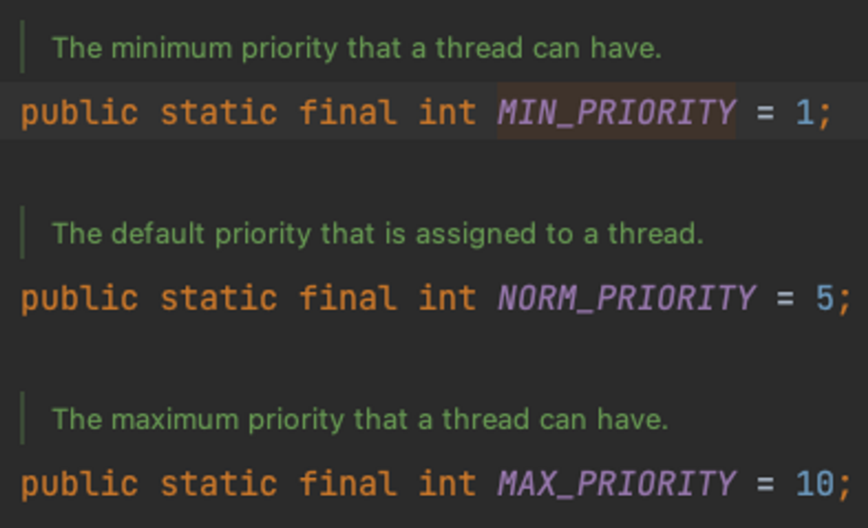 }쓰레드가 가질 수 있는 최소 우선순위