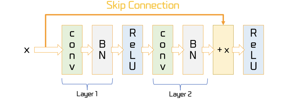 - skip connection 을 통해 레이어가 학습해야 할 양을 줄인다