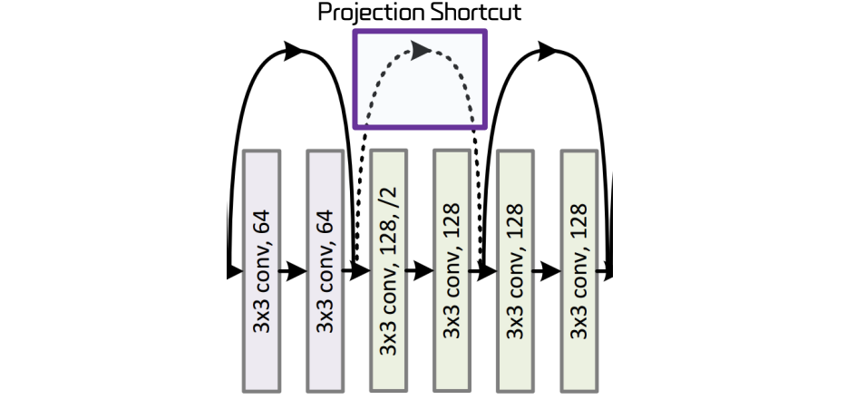 - 단순히 더할 수 없기 때문에 입력에 1x1 conv 를 적용해 차원을 맞춘다