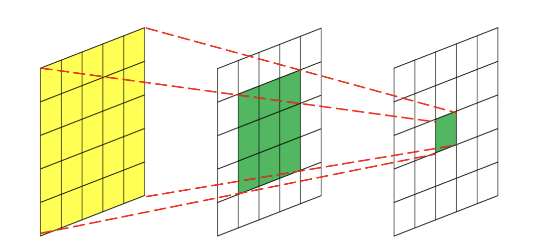 - convolution 을 통해 feature map 이 작아지기 때문에 Receptive Field 는 층을 지날수록 커진다
