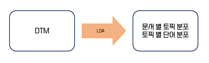 - Document Term Matrix 에서 문서 별 토픽 분포와 토픽 별 단어 분포를 찾는다
