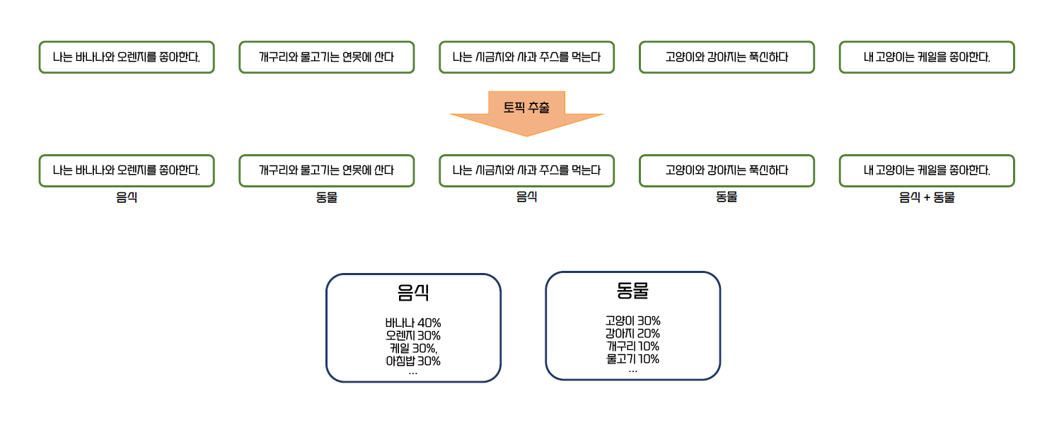 - 문서들이 가지는 주요 주제들의 분포와 의미를 제공