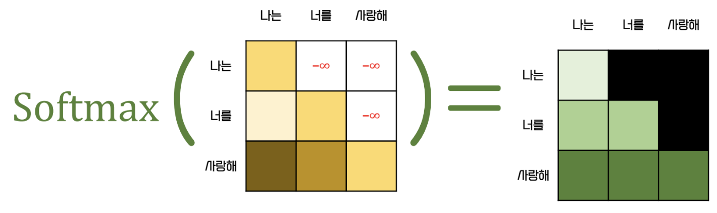 softmax 통과 전 뒤 쪽의 단어들을 모두