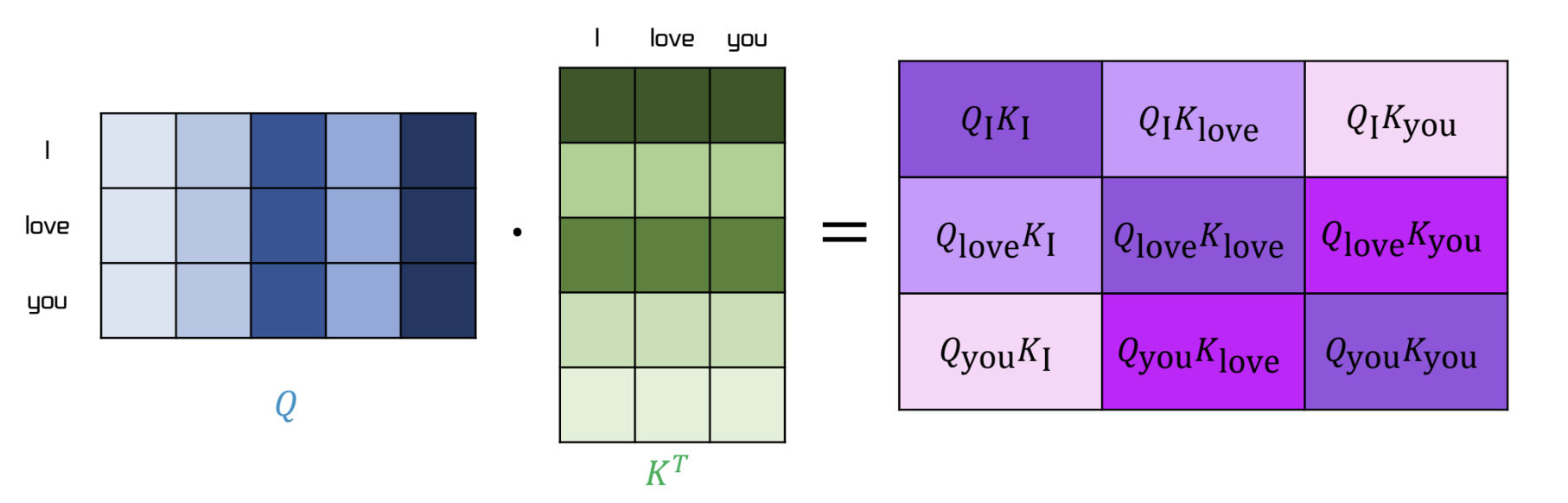 Q : 질문 / K : 질문에 대한 답 / V : 내적 결과의 의미 학습