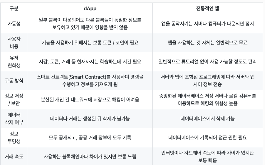 dApp 냉서 동일한 정보를 수많은 블록이 가지고 있기 떄문에 일부 블록이 다운되어도 앱 이용에는 ㅜㅁㄴ제가 없다.