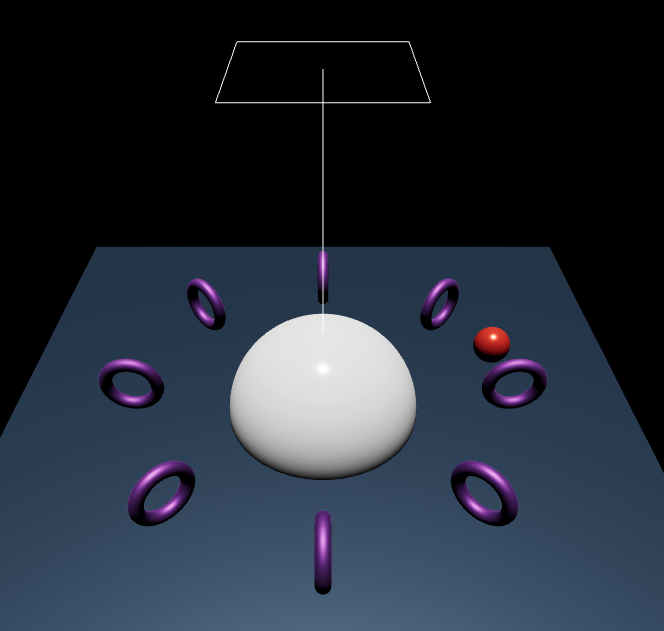 광원이 바라보는 코드를 회전하고 있는 빨간 원으로 추적