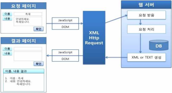 | 1. XMLHttpRequest : 웹서버와 사용자의 통신을 담당 |