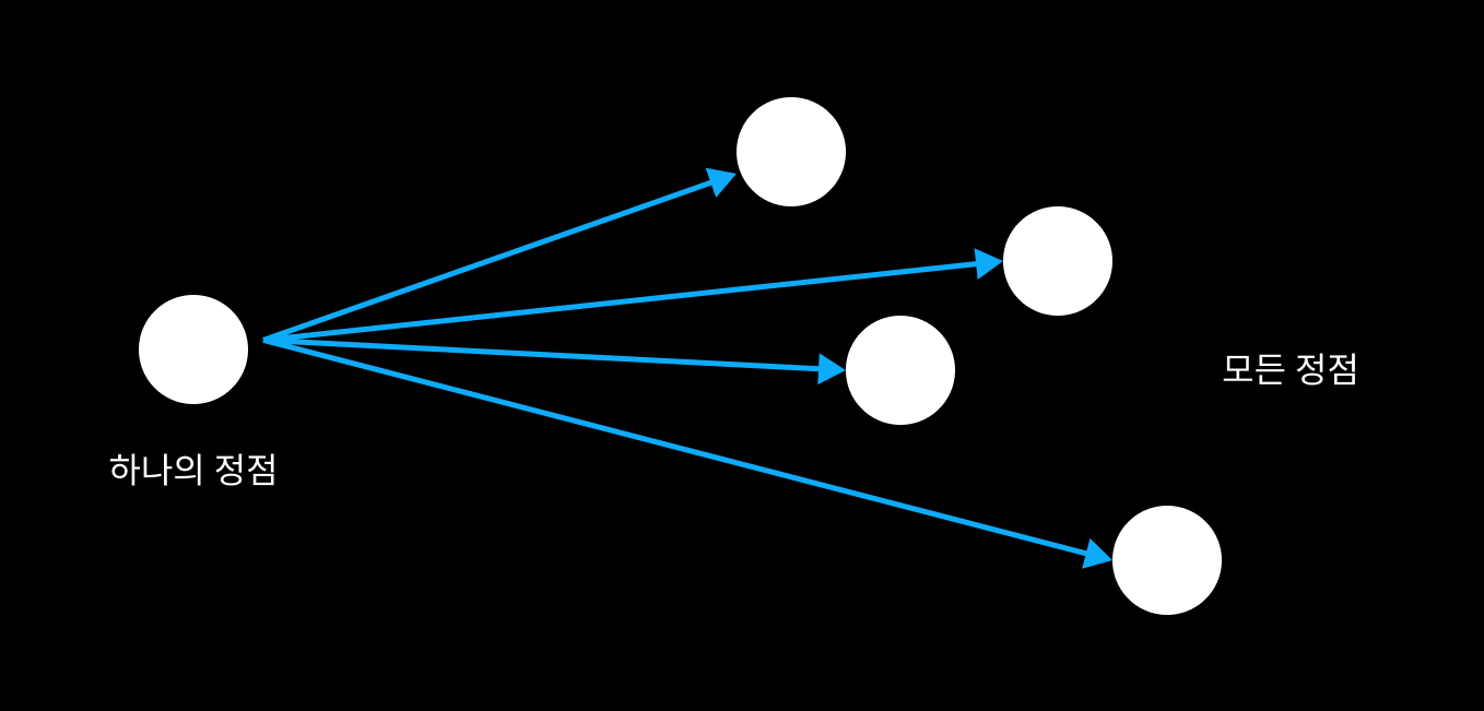 하나의 정점에서 모든 정점까지의 최단 거리를 구하는 알고리즘이다.