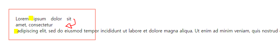 - 텍스트가 길어져서 부모 요소의 가로 폭을 넘어가더라도 자동으로 줄바꿈이 되지 않고 같은 줄에 계속 표시된다.