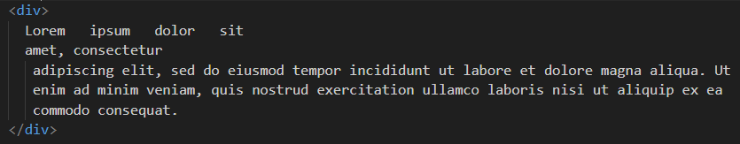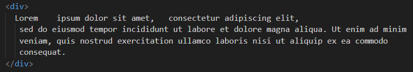- line 즉, 줄바꿈이 있는 것만 있는 그대로 나타내주고 그밖의 연속된 띄어쓰기, 들여쓰기는 모두 무시되어 1개의 공백으로 표시된다.