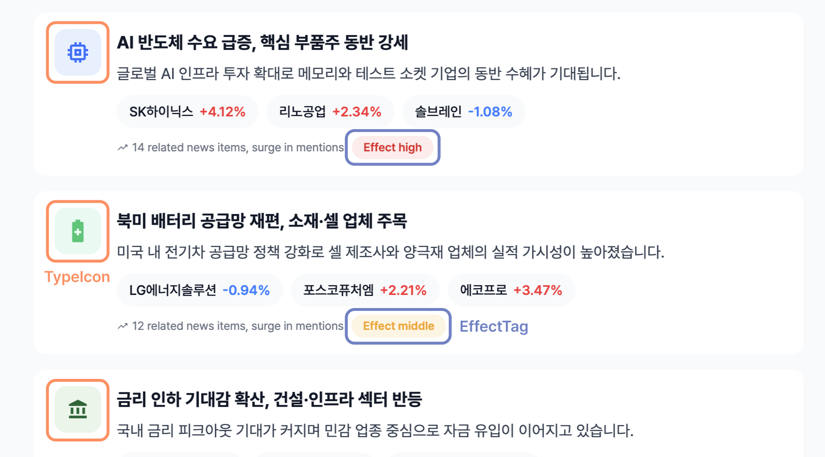 그런데 작업을 진행하다 보니 News에서도 같은 성격의 태그가 필요해졌다. 이 시점에서 이 컴포넌트가 정말 이슈 전용인지 다시 보게 됐다. 결과적으로는 특정 도메인보다 “영향도를 표현하는 방식”에 더 가까운 컴포넌트라고 판단했고, shared로 옮기게 되었다.