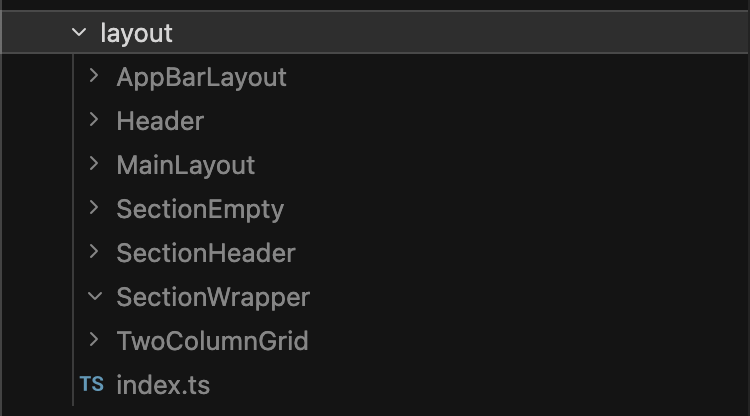 지금 가장 손이 가는 부분은 layout 폴더다. layout이라는 이름 자체가 꽤 넓고 추상적이다 보니, 여러 성격의 컴포넌트가 한 폴더 안에 함께 들어가 있다.