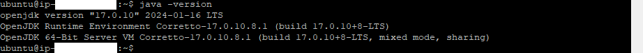 2. java 설치sudo apt-get update; sudo apt-get install -y java-17-amazon-corretto-jdk위 명령어를 통해 apt를 업데이트를 하고 java 17을 다운합니다.
