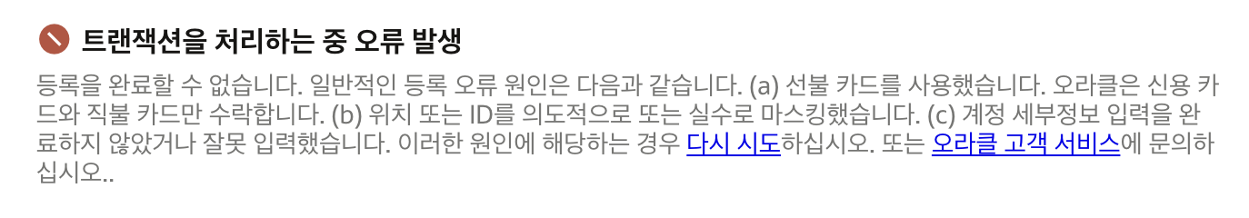 본인 명의가 아닌 신용카드를 사용해서 오라클 프리티어 계정을 생성하려 하지마라.