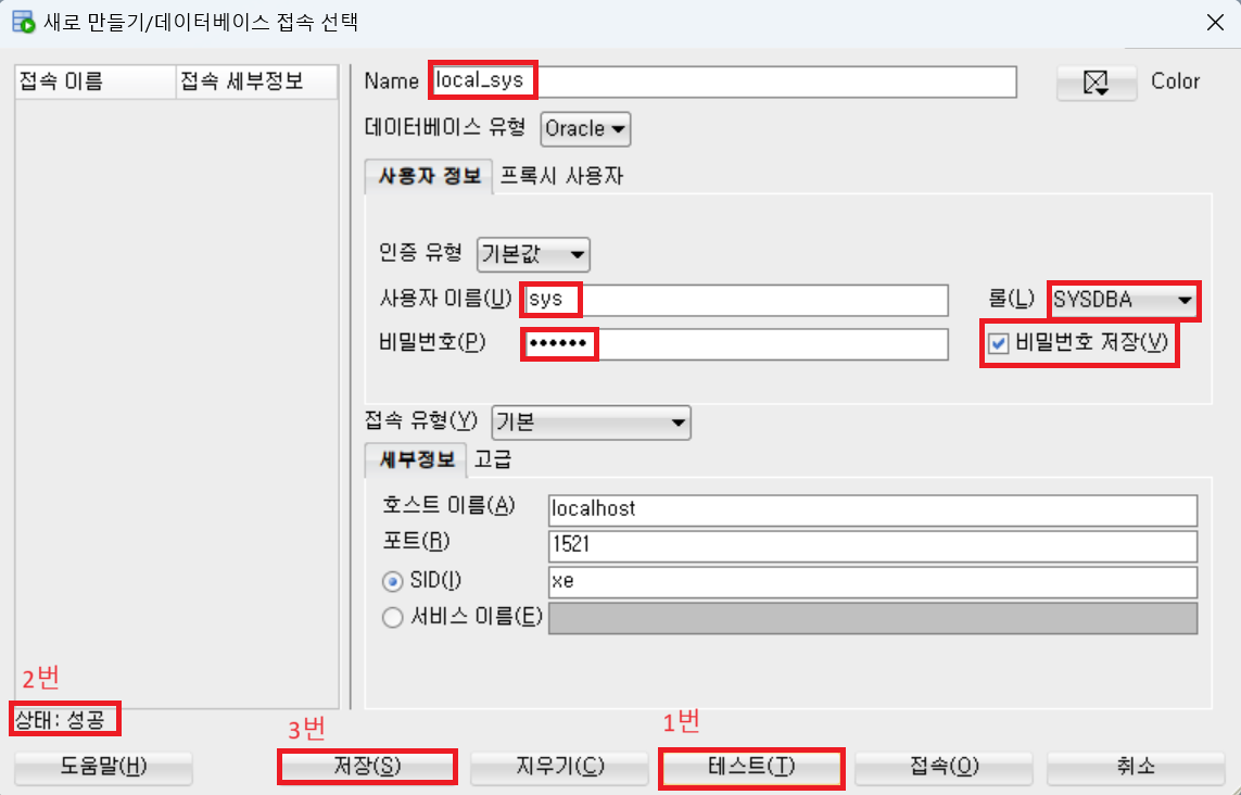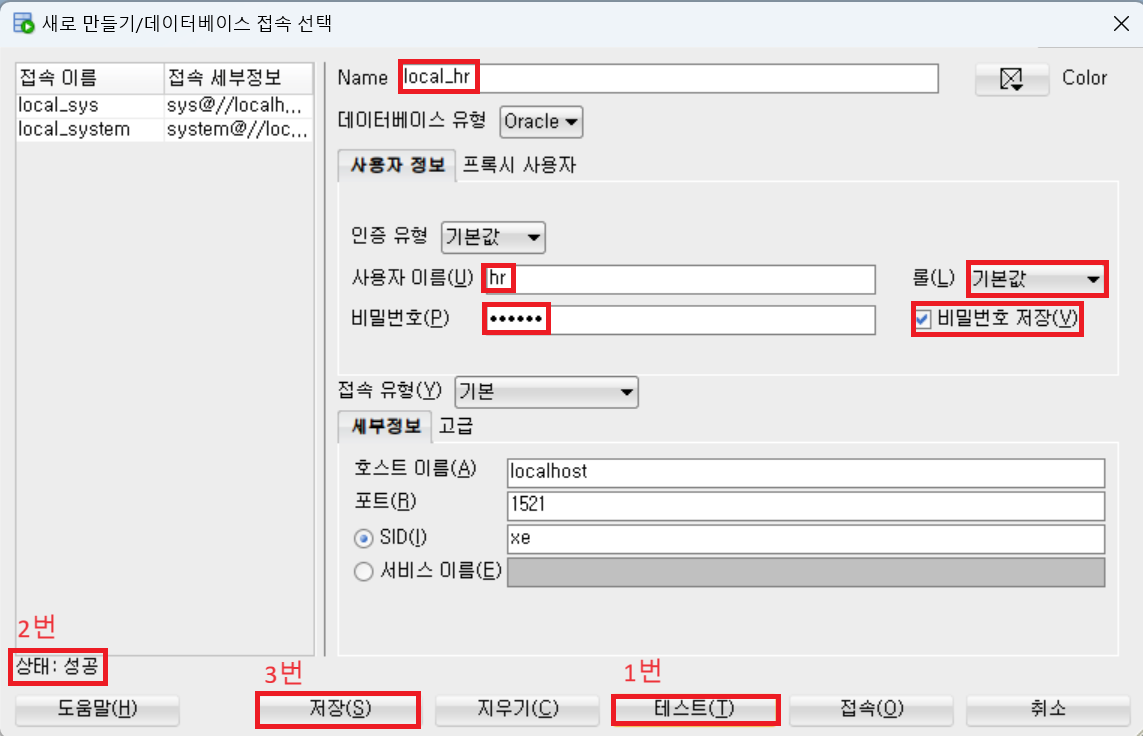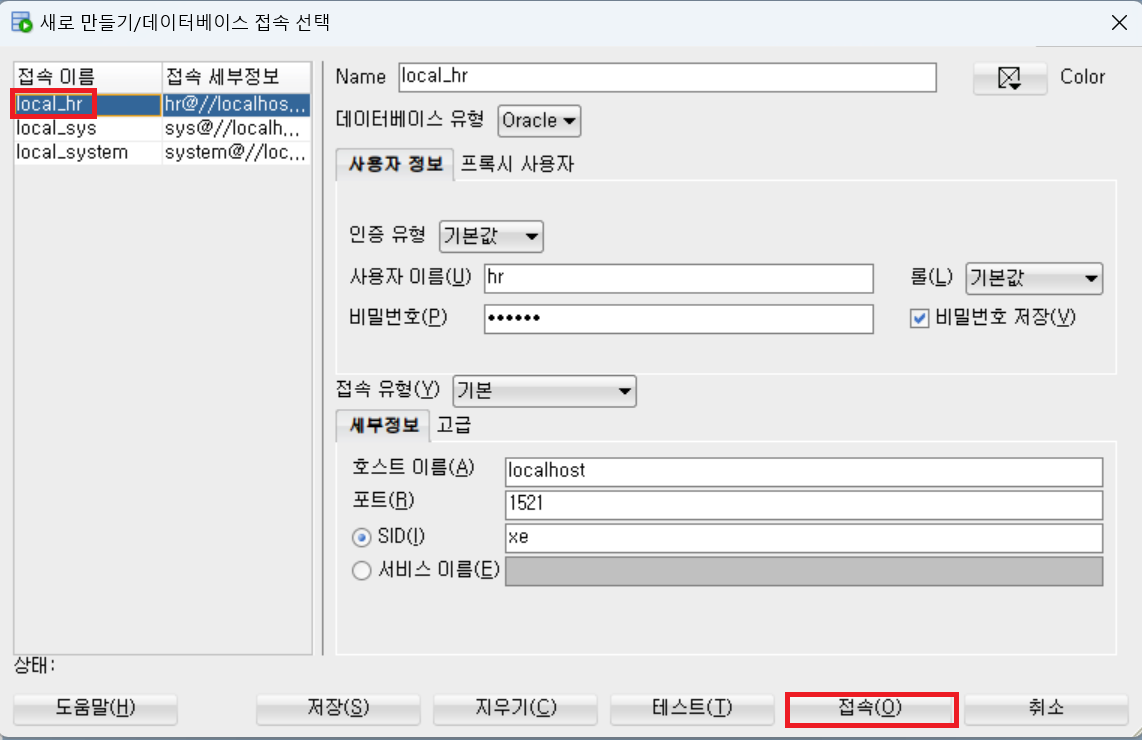 -> 비밀번호는 Oracle Database 에서 설정한 비밀번호 입력