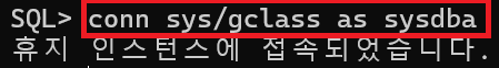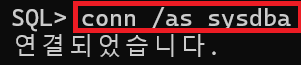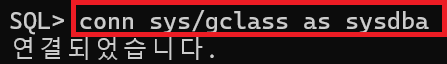 -> sys 로 연결할 시 'as sysdba' 를 함께 적어주어야 한다.