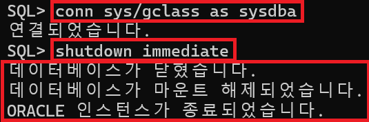 -> 오라클 서버가 중지되어진 상태에서 sys 로 연결